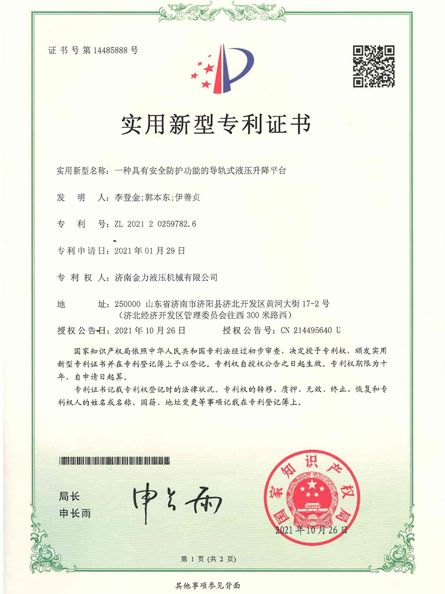 一(yī)種具有安全防護功能的導軌式(shì)液(yè)壓升降平台