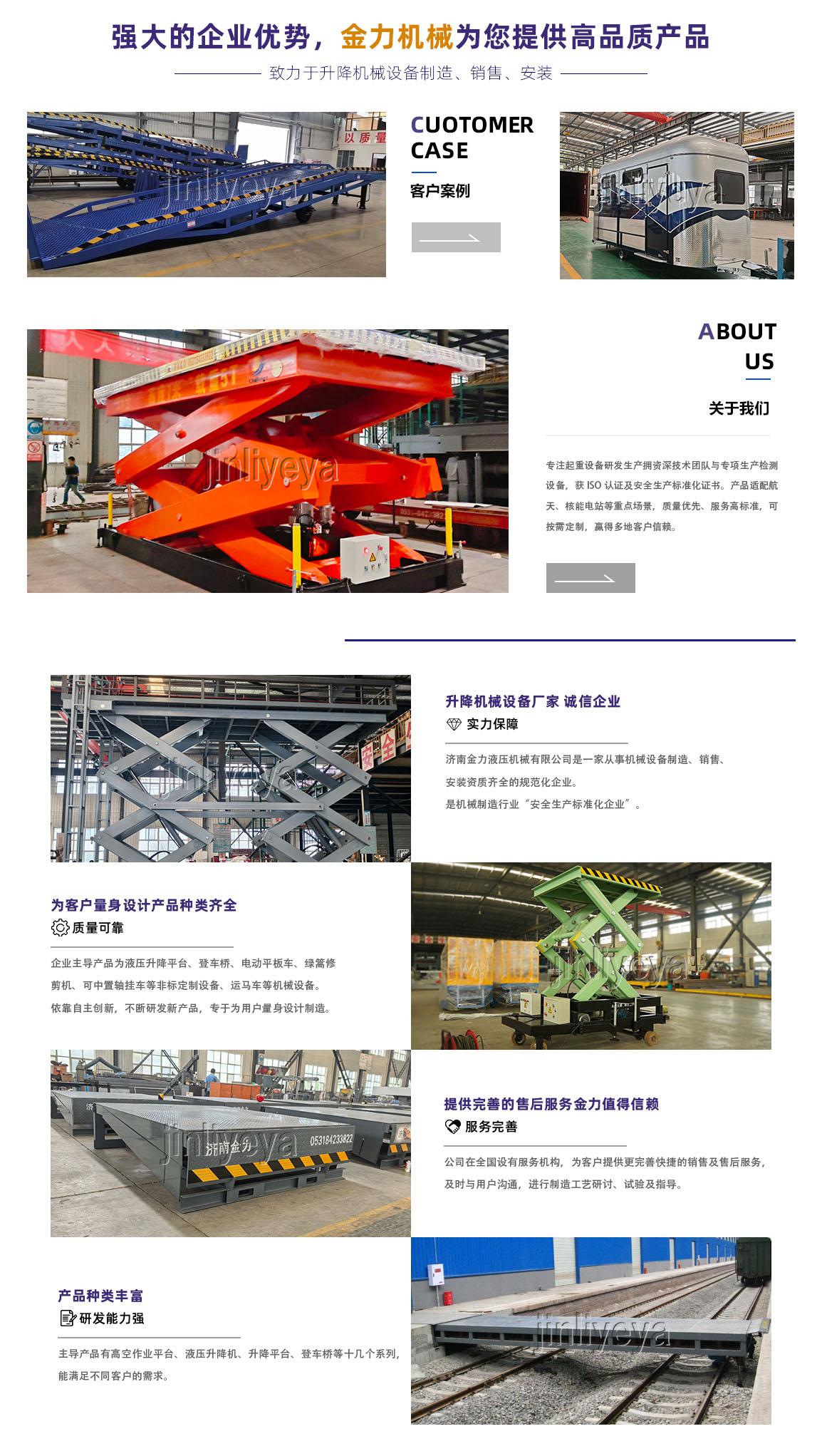 關於我們濟南www.17c.com液壓機械有限公司介紹 濟南www.17c.com液壓機械有(yǒu)限公司(sī)是濟南(nán)市高新技術企業,質量、信譽雙保單位,重合同(tóng)守信用單(dān)位。工廠始建於1958年,於(yú)2004年改(gǎi)製,占地麵積30000平方米,注冊資金5000萬(wàn)元,建築麵積15000平方米,在各級(jí)組織和主管部門正確領導下,先後成立了基層組織和工(gōng)會組織。公司團隊帶領廣大員工,以科學發展觀為統(tǒng)領,加強企業思想政治工作,以(yǐ)組織建設推動(dòng)發展。依靠科技進步,強化管理促進創新,聚焦質(zhì)量穩固生存(cún)根(gēn)基,轉方式,調結構,以創新驅動整體工作(zuò)推進,把(bǎ)創(chuàng)新作為企業發展的生命線(xiàn)。 公司重視知識產權的保護(hù)和(hé)自主(zhǔ)創新,不斷提高研發能力。申報國家發明zhuanli四(sì)項:電動旋轉垂直(zhí)升降式(shì)立體車庫、一種(zhǒng)操作麵積可(kě)變的升降平台、一(yī)種抗(kàng)爆容器支撐調節平台、一種掛車;實用技術zhuanli若(ruò)幹項(xiàng)包括:車載式綠籬(lí)修剪機、快速伸縮式鐵路跨橋、升降平台安全穩定裝(zhuāng)置、低壓軌道供電電動平車(chē)、雙速電機電動平車、機車分離式快速掛接升(shēng)降平(píng)台...