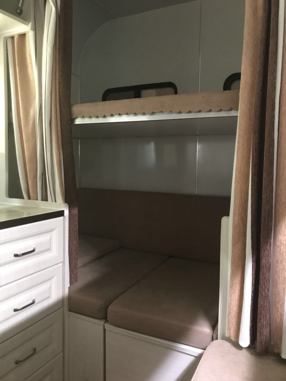 車內寬敞而豪(háo)華,具備各種家具(jù)、車載家用電器、儲存櫃、桌椅沙發等,麵積(jī)一般可達40平米左右,洗碗機(jī)、全自動(dòng)洗衣機(jī)、烘幹機、房車專用水箱、整體浴室、衛星天線、暖冷係統、網絡係統、電話機、傳真(zhēn)機、GPS、視聽娛樂設備、倒車監視係統(tǒng)、防撞車警報係統、安全(quán)報警係統(tǒng)、我遊房車將其分類等應有盡有。