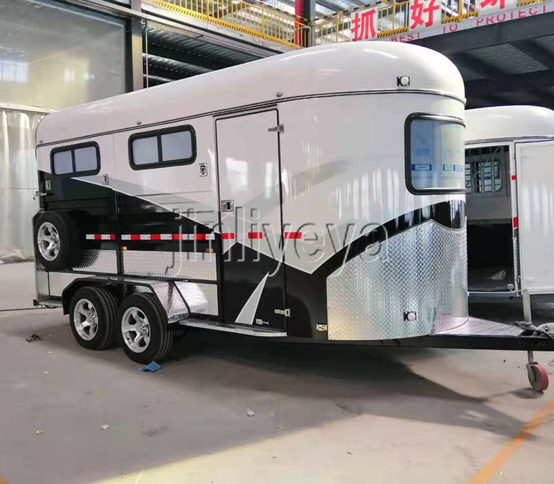 車廂:通(tōng)常采(cǎi)用全封(fēng)閉式或半封閉式設計。全封閉式車廂能為馬匹提供更安全、穩定且受外界幹擾小的環境,有效抵禦風雨、寒冷等惡劣天氣;半封閉式車廂則(zé)在保證(zhèng)一定防護功能的同時,具有更好的通風(fēng)性。車廂內(nèi)部一(yī)般設有分(fèn)隔(gé)欄(lán),可將空(kōng)間分隔(gé)成多個獨立區域,避免馬匹在運輸過程中相互碰撞、踩踏,保障馬匹的安全。